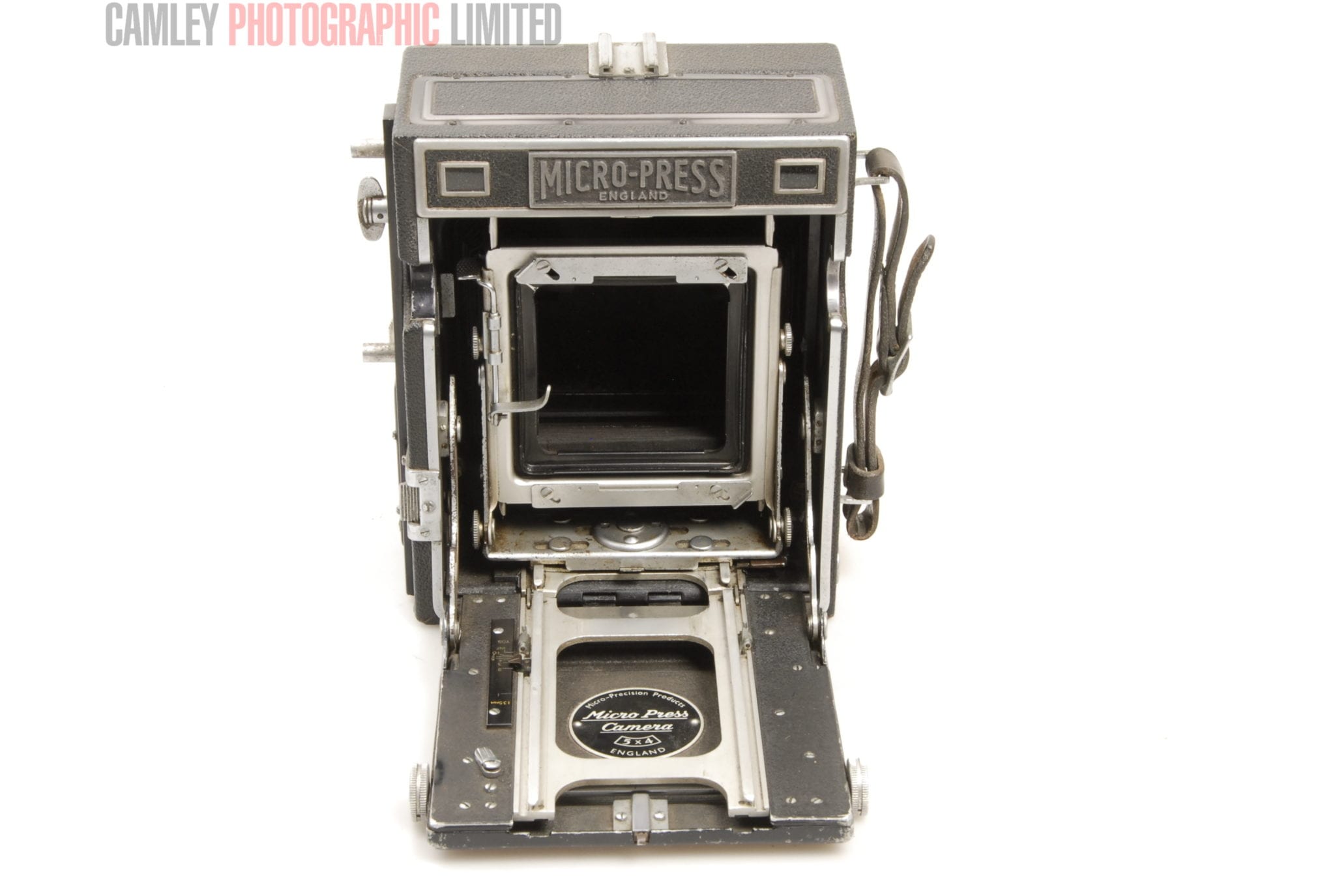 Large format camera. Contains a shutter. Which works, though the speeds are not to be trusted.