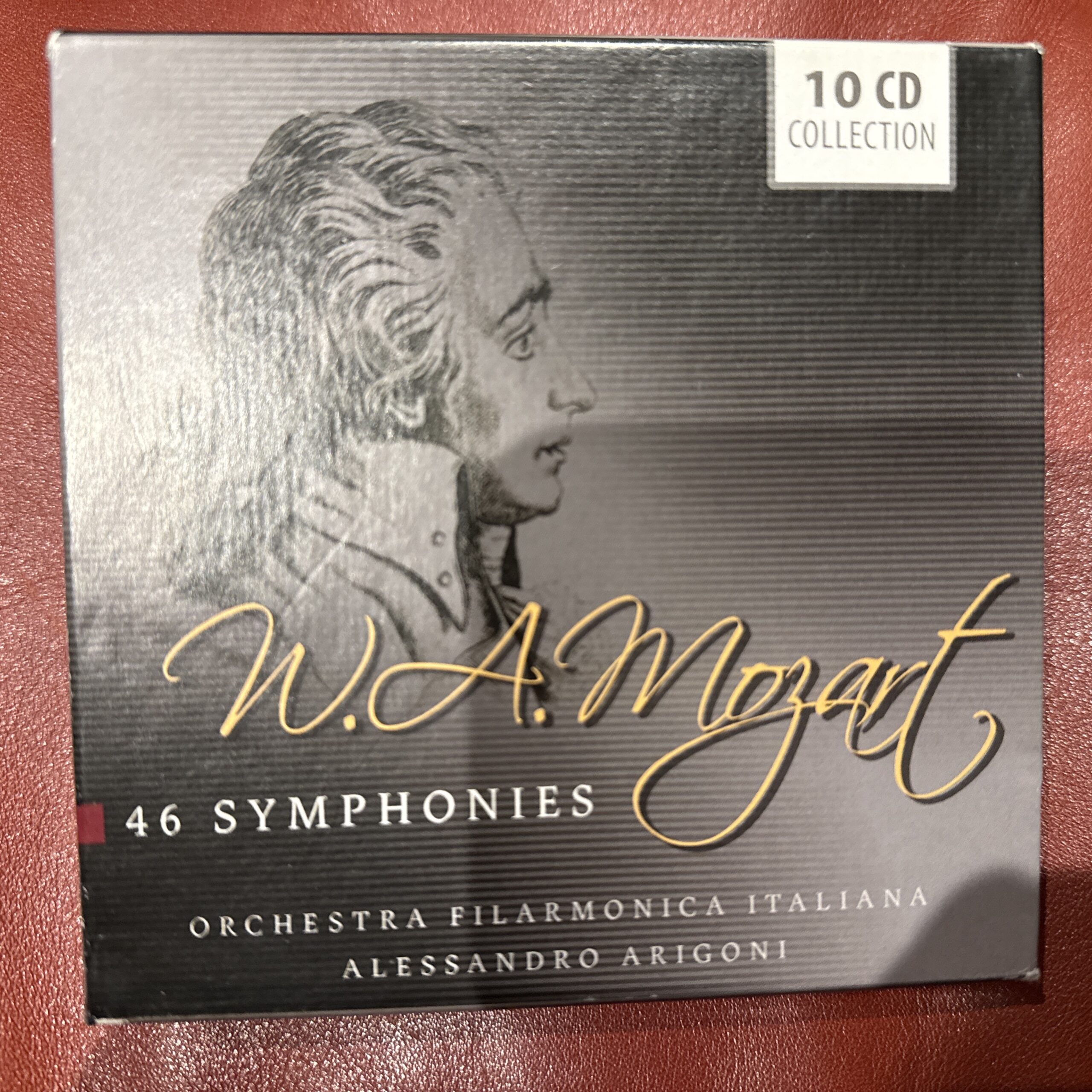 An exceptional-value survey of 46 Mozart symphonies across 10 discs, offering remarkable breadth of repertoire in a single set. Alessandro Arigoni leads the Orchestra Filarmonica Italiana di Torino in clean, classical-style performances that serve the music well. A fantastic way to explore Mozart's symphonic output from early juvenilia to the great final trilogy — at a price that's hard to beat.